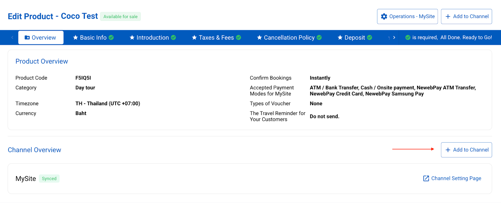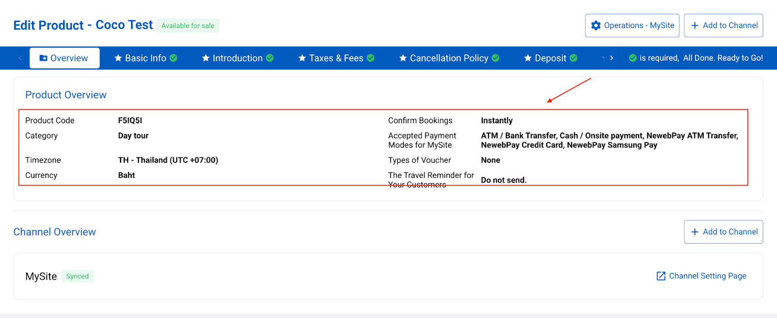 The first tab within the product page is the “Overview” details, which include two main sections: Product Overview and Channel Overview.