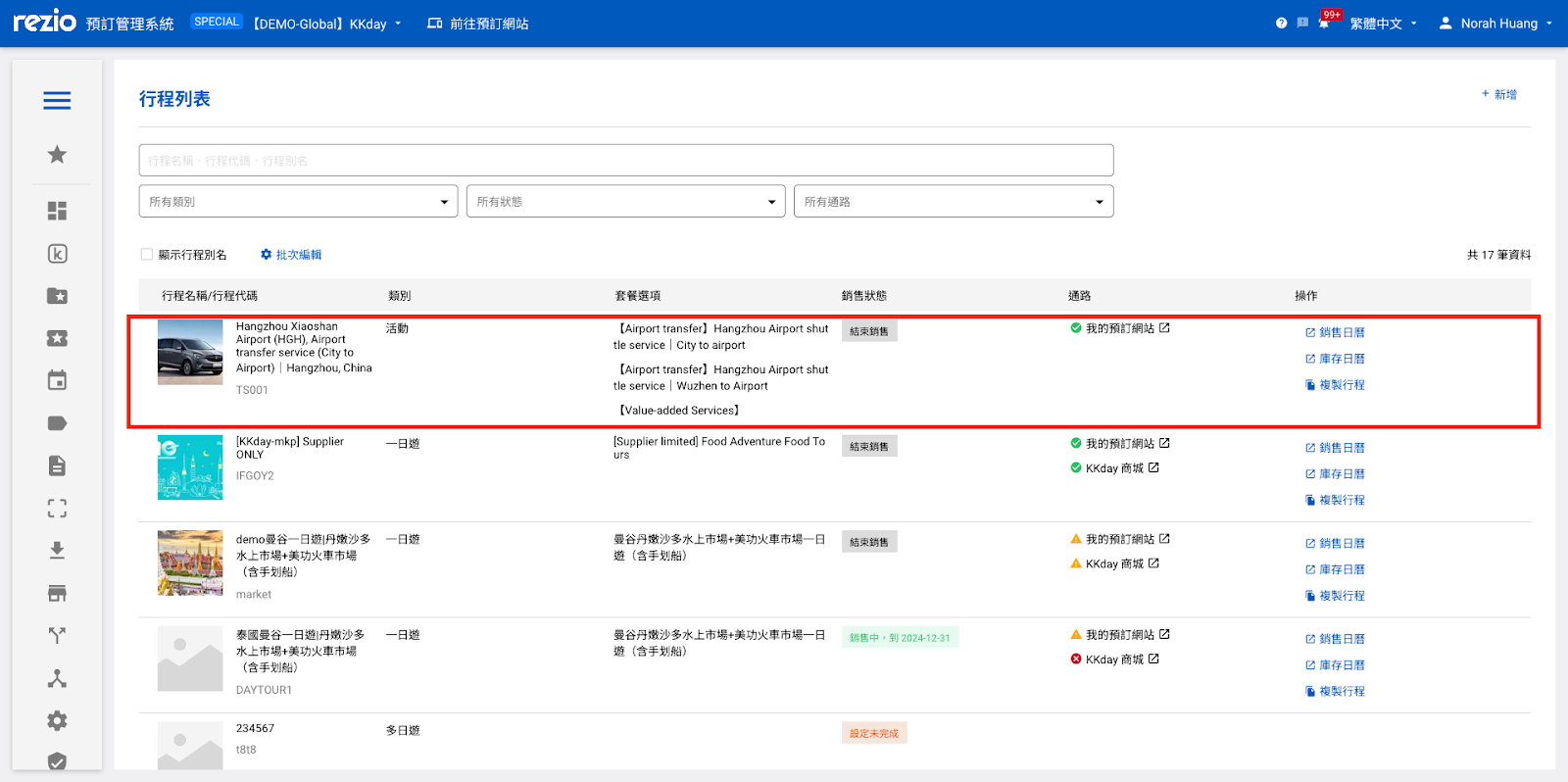 此區塊可讓您一目瞭然看到此行程在各個通路的上架狀態,以及是否有任何問題需要調整。