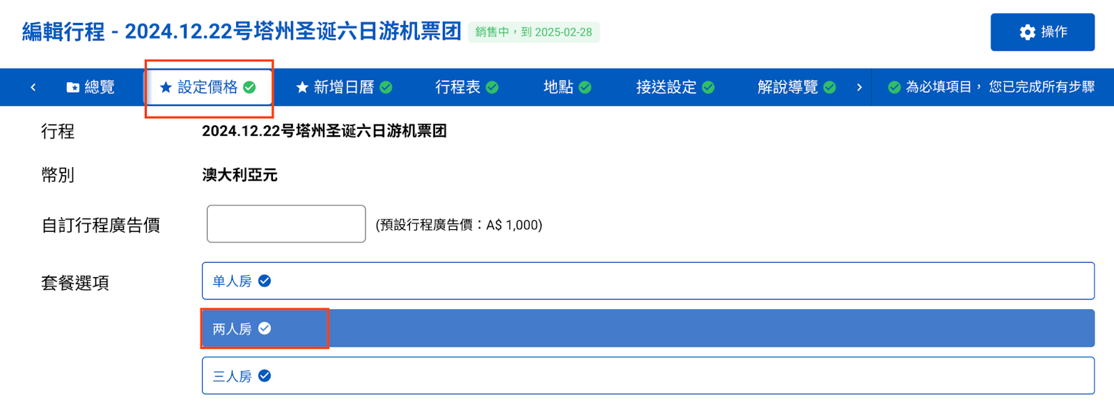 步驟2:完成發布後 > 可至預訂網站檢查是否正確